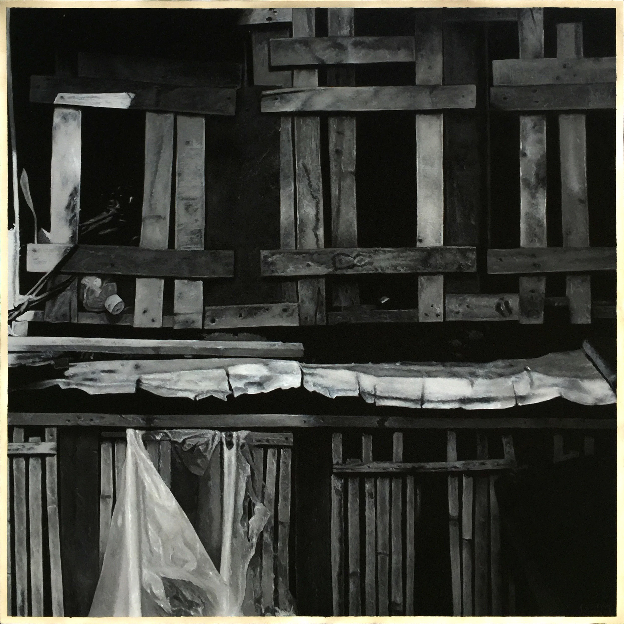 森尼斯則聚焦於人口急速成長的都會區,在一張張黑白、衰敗廢棄印象的作品中,反映出東南亞許多都市高速發展下的社會與環境的失衡。無數的鐵皮屋、塑膠布、木條、塗鴉,傳遞出森尼斯對於現實、社會底層的關注。